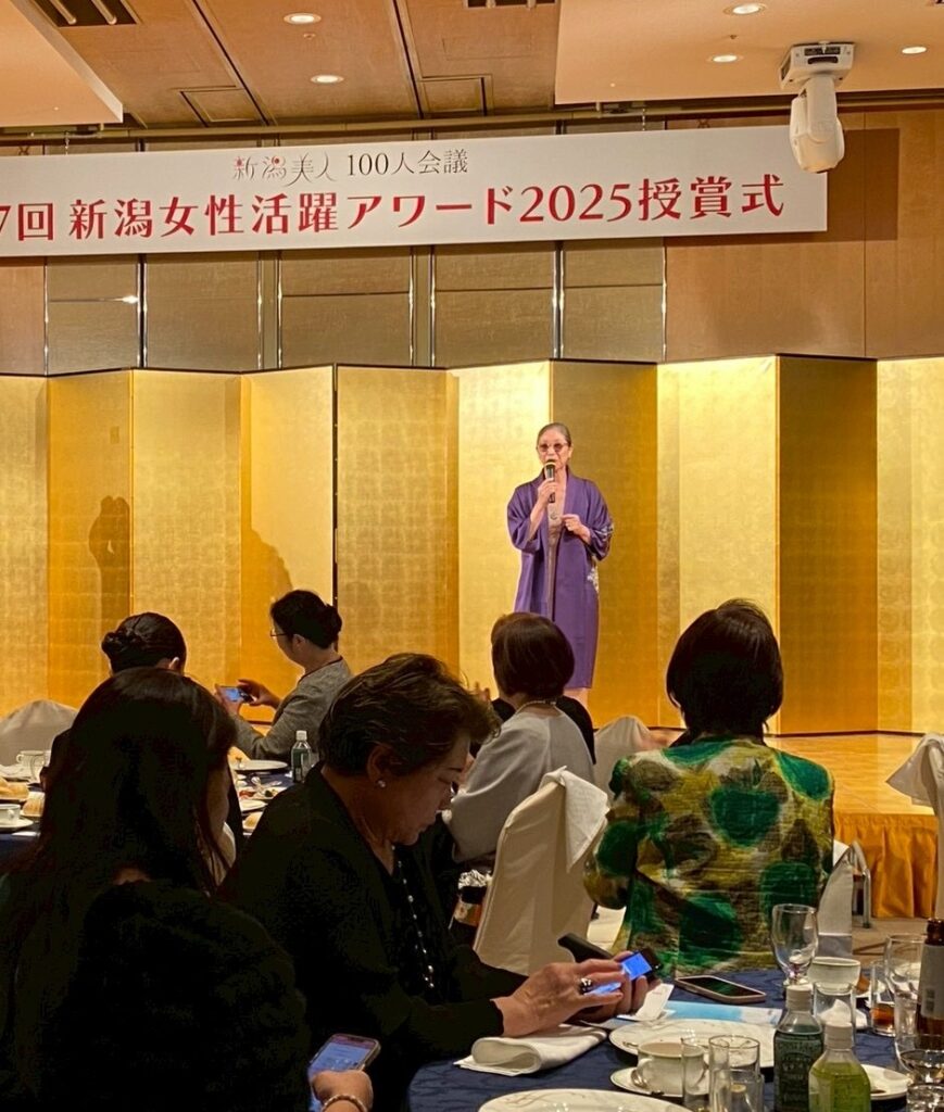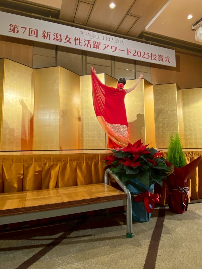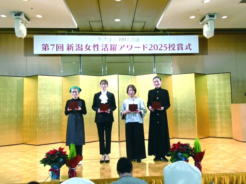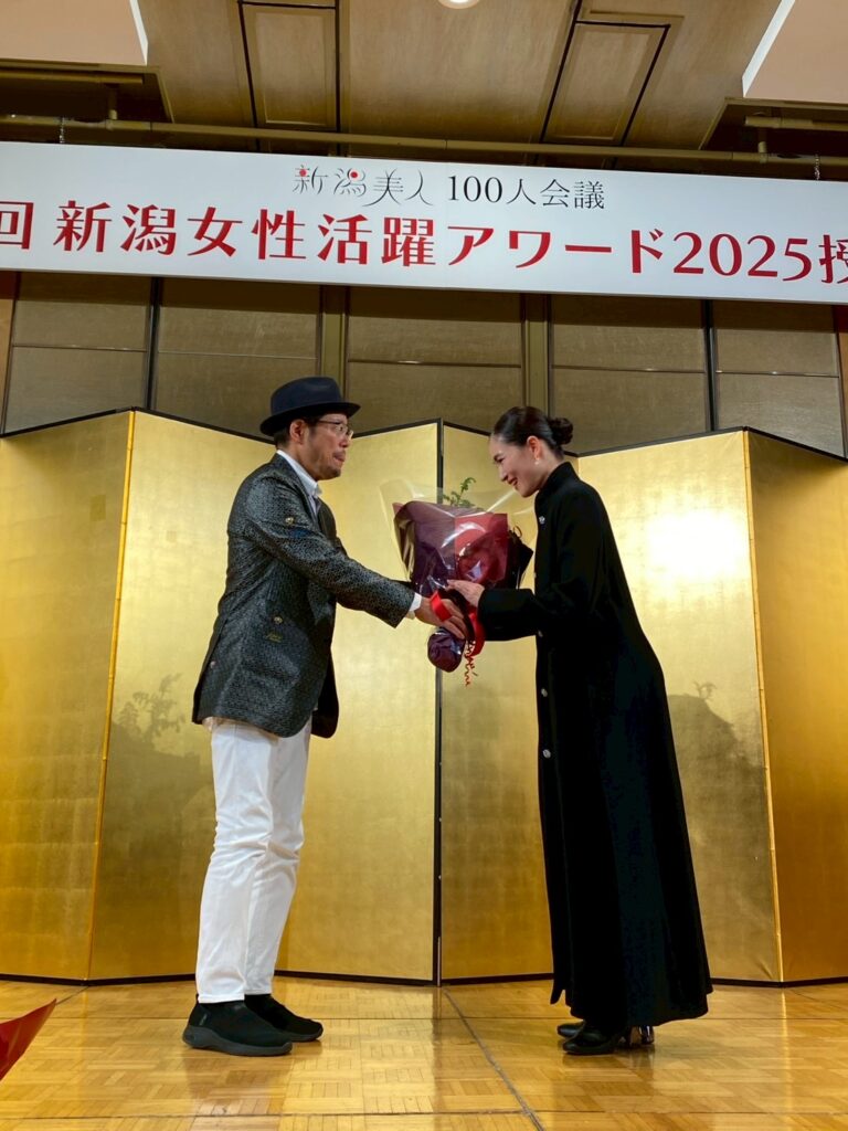 12月7日(日)ホテル日航新潟にて「新潟美人100人会議 第7回女性活躍アワード2025 授賞式」を開催しました。今年の受賞者は有限会社右近 代表取締役 ぼんご女将の右近由美子さん、サトウ食品新潟アルビレックスランニングクラブアンバサダーで整形外科医の広田有紀さん、そして日本佐渡若林藝術舞踊団 団長でstudio PAL主宰の若林素子さんと日本佐渡若林藝術舞団芸術監督でダンサー、演出家の若林美津枝さんが親子受賞されました。受賞された皆様、誠におめでとうございます。今後ますますのご活躍を応援しています!